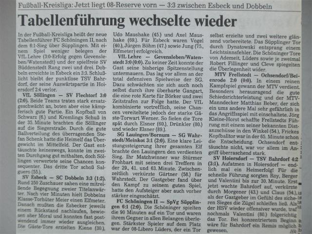 Zeitungsartikel der Saison 92/93